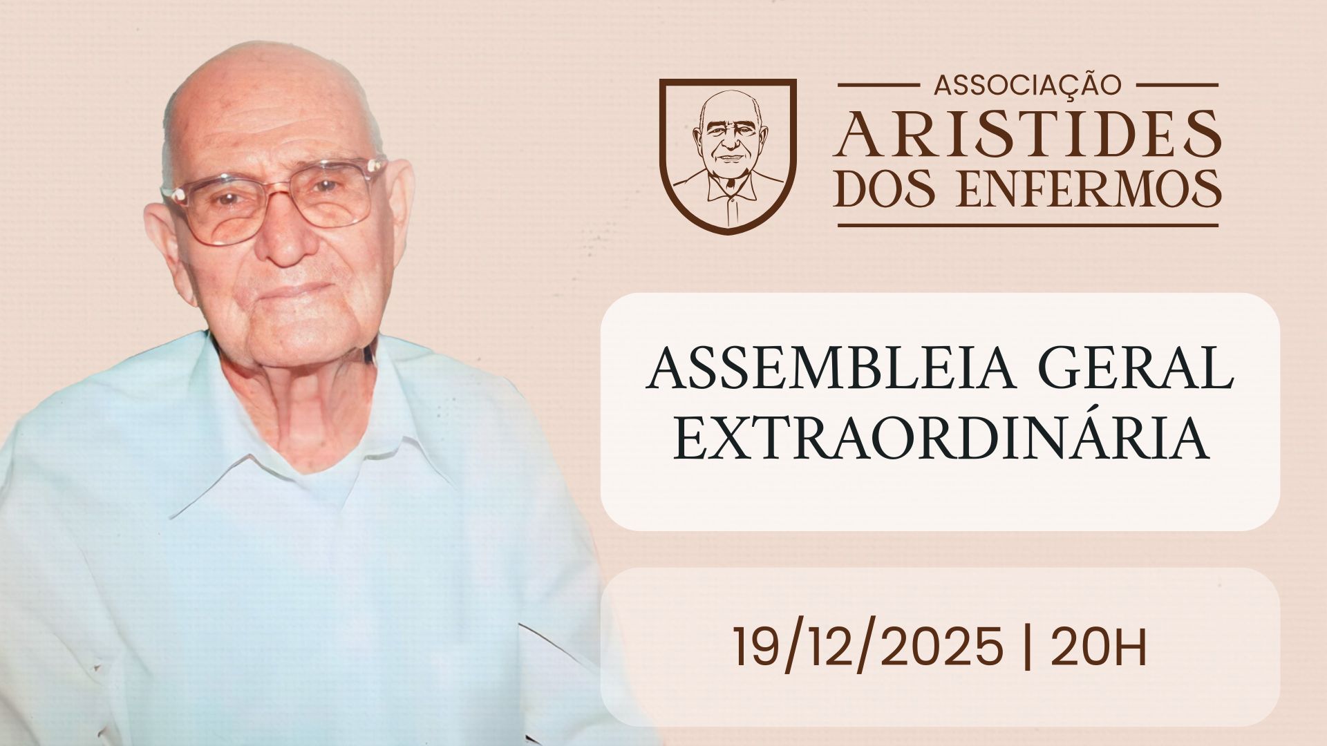 Lembramos a todos que nesta sexta-feira, 19/12/2025, às 20h, será realizada a* ASSEMBLEIA GERAL EXTRAORDINÁRIA* da Associação Aristides dos Enfermos,* em sessão online via Google Meet.*